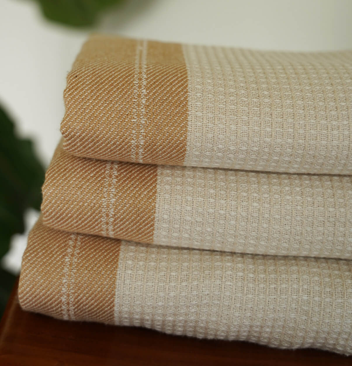 Cotton Bath Towel – Honeycomb Weave – Beige / Brown