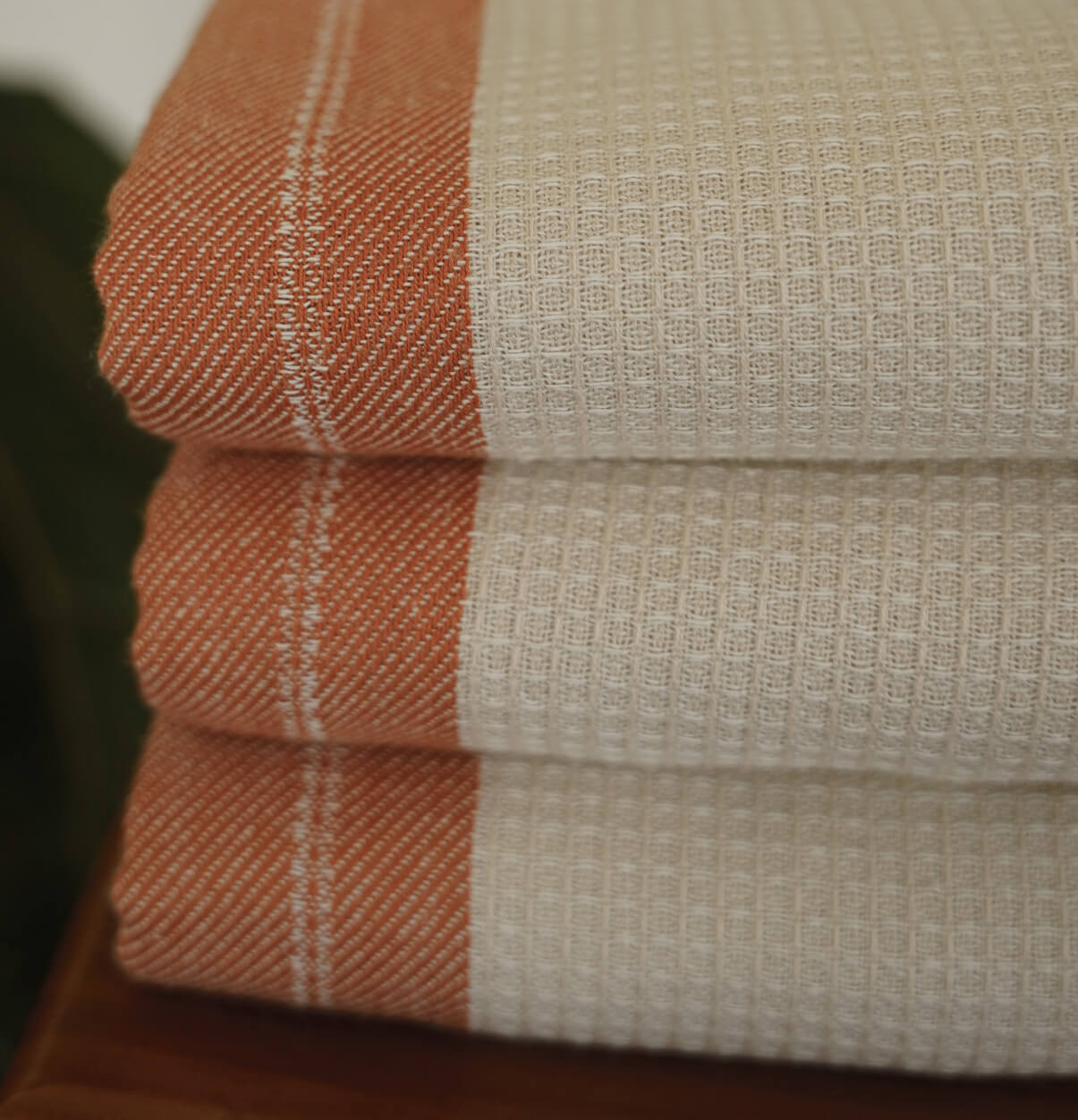 Cotton Bath Towel – Honeycomb Weave – Beige / Orange