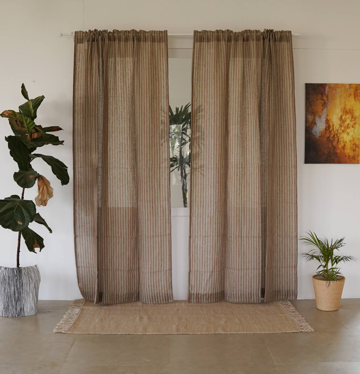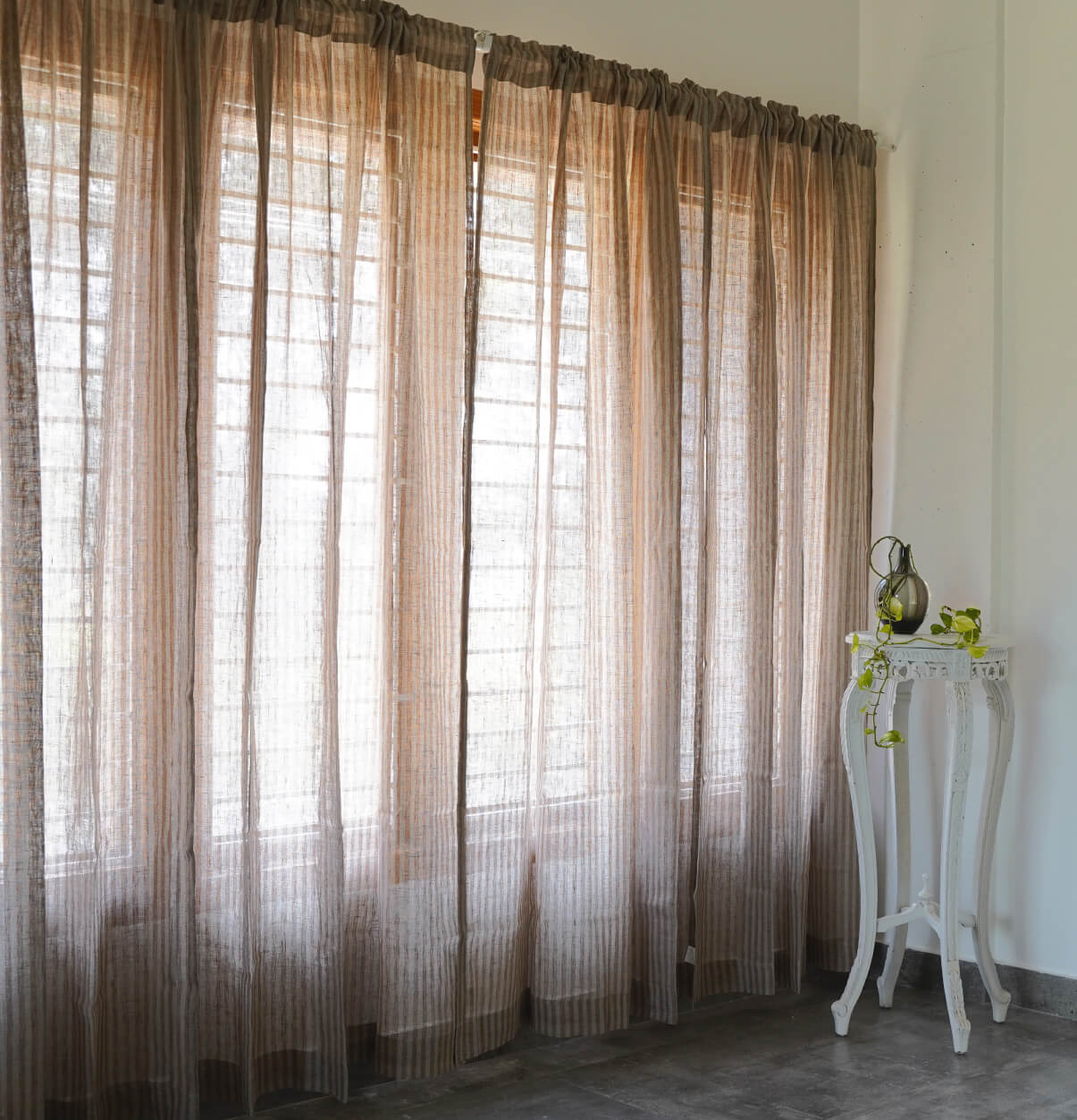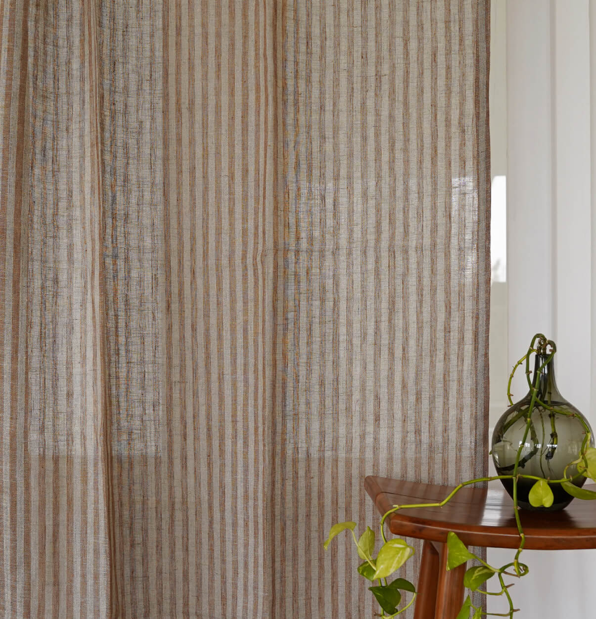 Linen Sheer Curtain – Twin Stripes – Beige / Orange