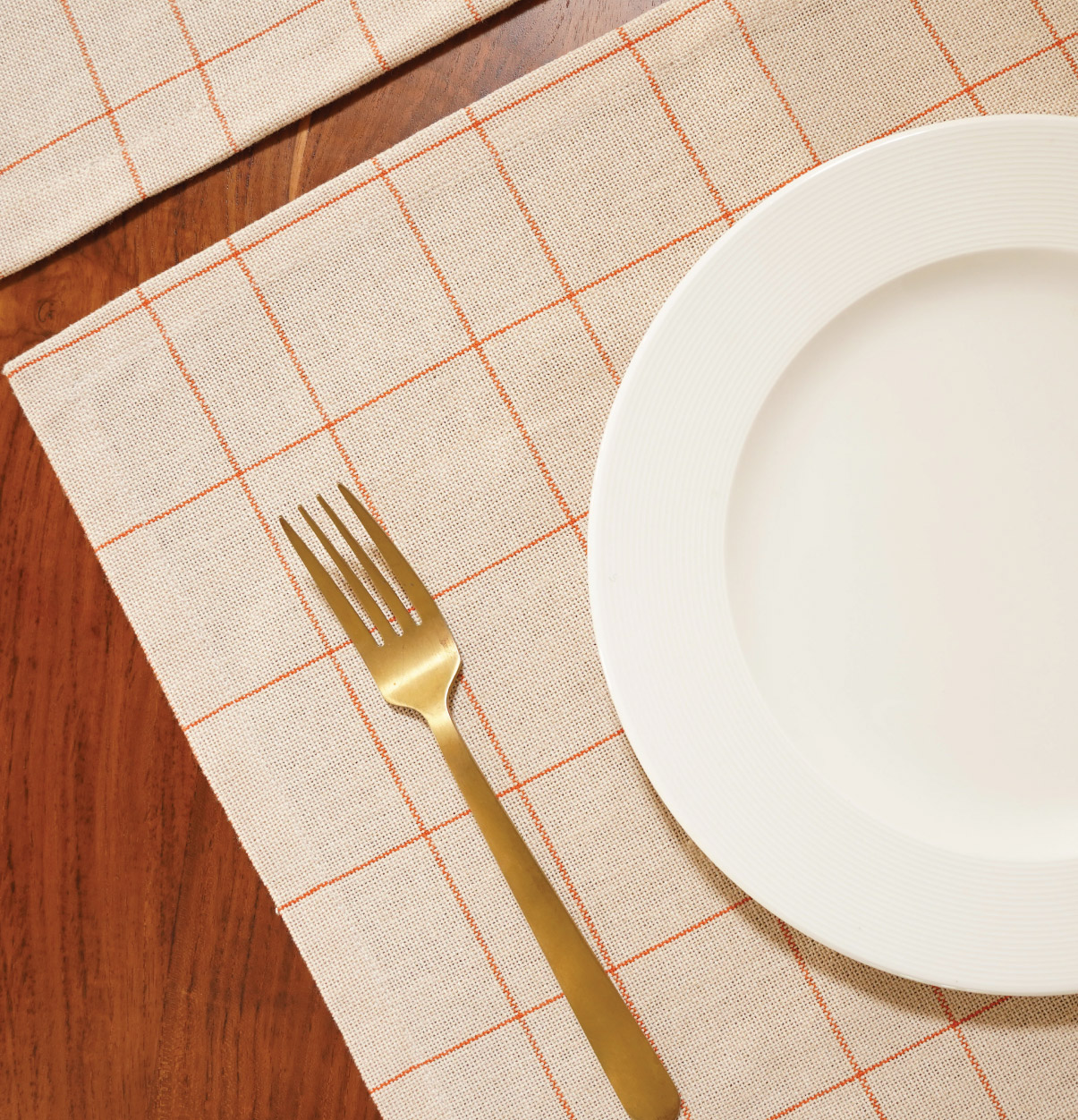 Beige Cotton Tablemats – Checks – Rust Orange