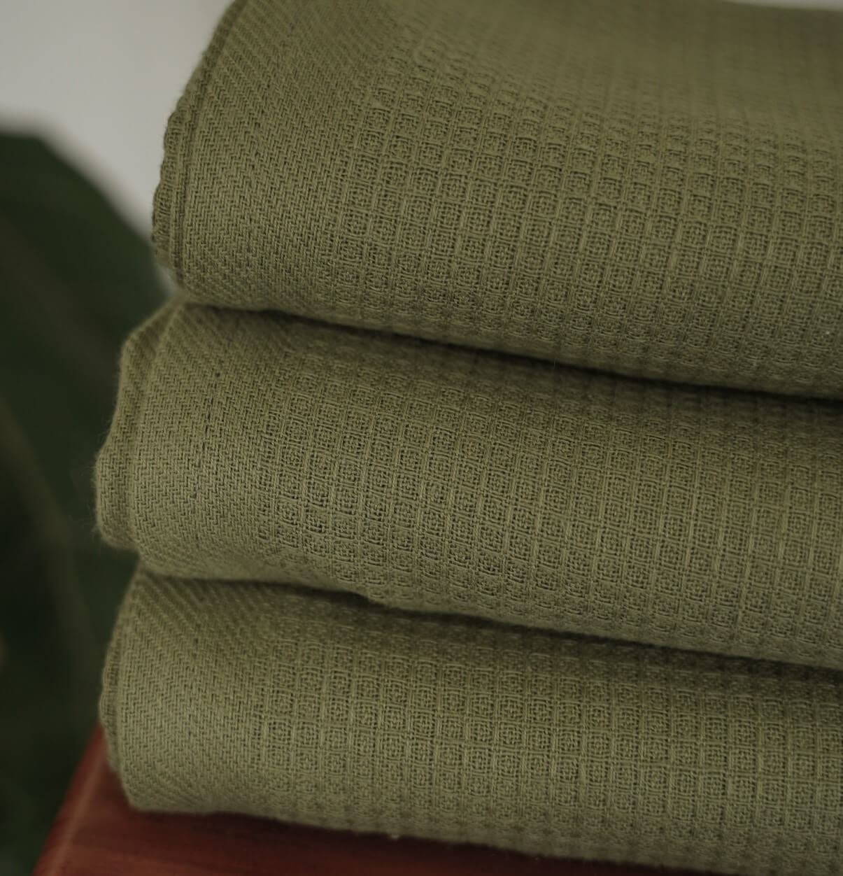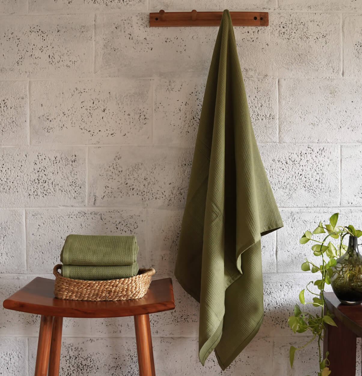Cotton Bath Towel – Honeycomb Weave – Olive Green