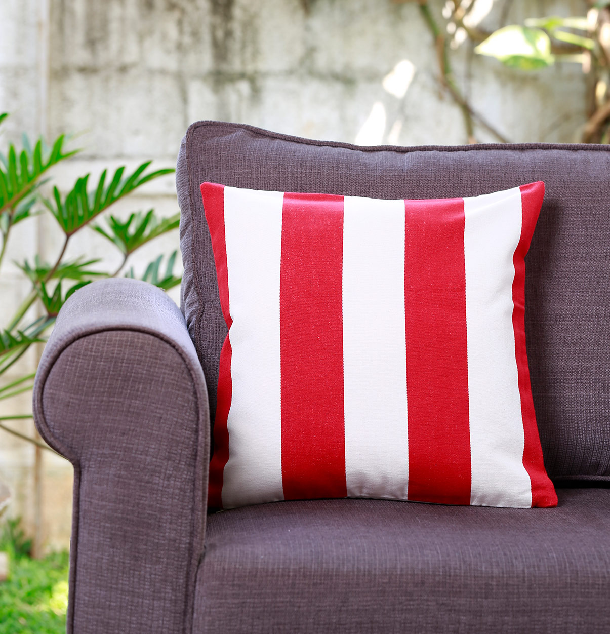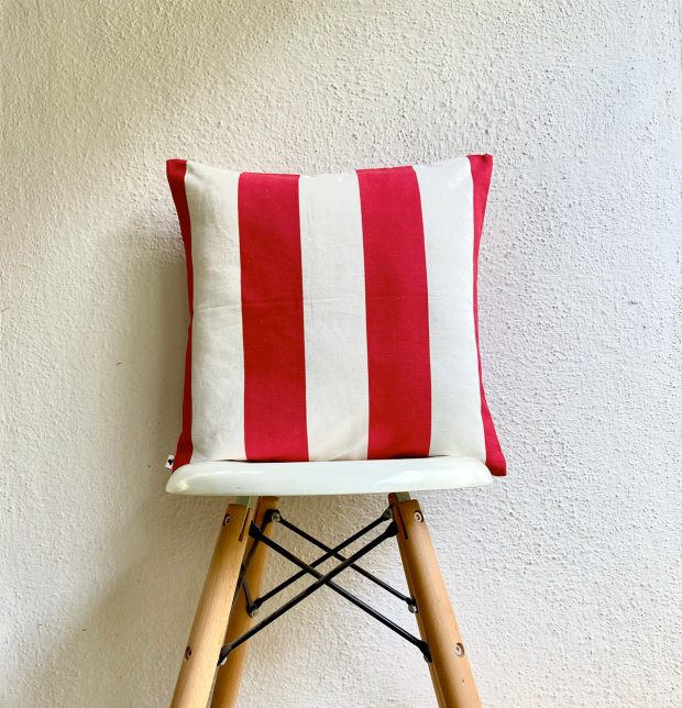 Red Cotton Cushion Cover – Cabana Stripes – 16″x16″