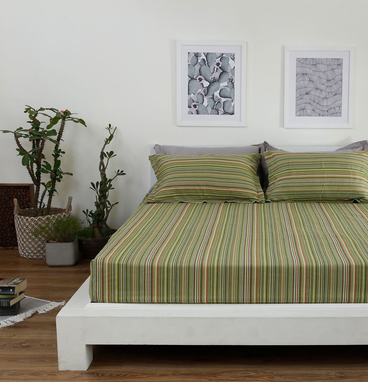Cotton Pillow Cover – Woven Stripes – Green
